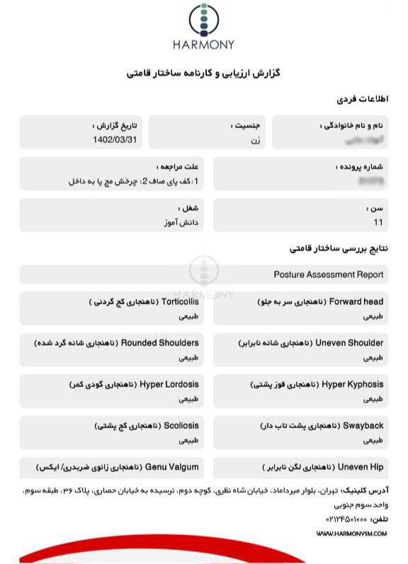 نمونه کارنامه ساختار قامتی